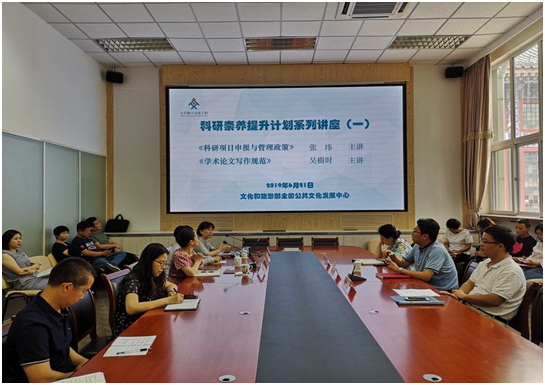 为认真贯彻落实“不忘初心、牢记使命”主题教育“守初心、担使命、找差距、抓落实”的总体要求,进一步增强全体员工的“脚力、眼力、脑力、笔力”,文化和旅游部全国公共文化发展中心(以下简称“发展中心”)坚持问题导向,面向全体员工专门策划推出“科研素养提升计划”。该计划结合发展中心工作重点和业务实际,开展系列培训活动,提高员工专业技能,提升员工职业素养,让全体员工特别是青年员工能够更好地应对公共数字文化工程融合创新发展中面临的机遇与挑战,搭建员工成长成才的平台。