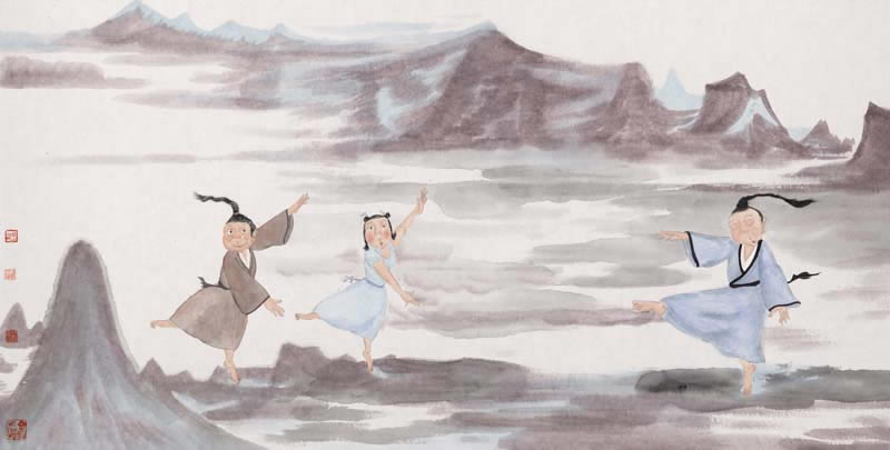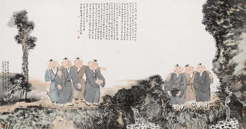 本次联展共展出作品77件。区别于以往艺术家各持私物展出的形式,两人不仅在个人作品上展现了独有的水墨特点,更是在合作过程中巧妙介入和融合了水墨中的山水、人物。这批合作的山水人物画,先由王艺绘制人物,再由魏广君补山石树木之景致。他们互相互通互融,笔墨配合总体协调又不失变化。此外,水墨作品中的人物形象还翻铸成雕塑相应展出,从而用不同的元素,为观者奉上一场水墨的视觉盛宴。