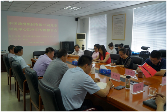 6月30日下午,中国动漫集团有限公司党委举行中心组专题学习报告会,邀请驻部纪检组副局级纪律检查员郭志就“扎实推进全面从严治党的各项工作”做专题辅导报告。在一个多小时的报告中,郭志围绕为什么要全面从严治党、全面从严治党的内涵以及如何落实全面从严治党要求等内容,进行了深刻讲解。郭志在报告中结合典型案例和文化部系统工作实际,提出了八个特别需要注意的问题。报告既全面深刻又生动扎实,为集团党员干部上了生动一课。