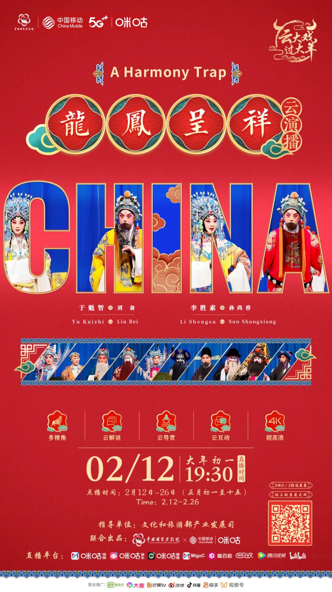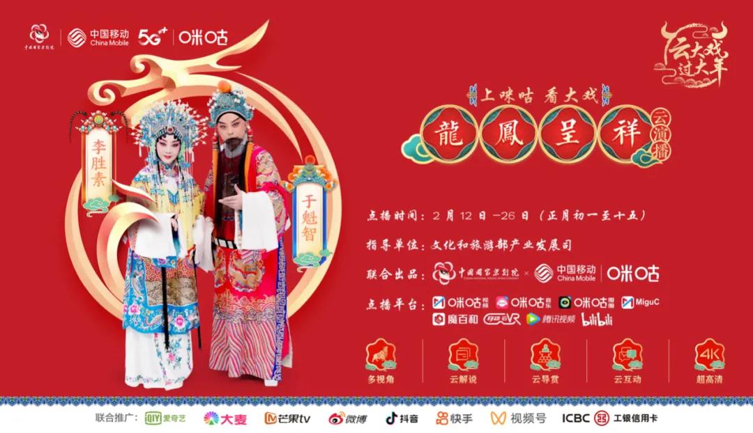 金牛送福贺新春、龙凤呈祥话佳人!曲艺名家大荟萃,四海云赏国粹香!牛年春节期间,由国家京剧院和中国移动咪咕联合出品的《龙凤呈祥》5G+4K云演播,自大年初一晚正式在咪咕视频、咪咕音乐、咪咕圈圈、魔百和、移动云VR、MiguC及腾讯视频、哔哩哔哩等多个平台上线。此次京剧“云演播”将横跨初一至十五期间,形成特色京剧演艺专场,与多台以歌舞表演为主的晚会相比,在内容制作、播出形式、用户体验、场景互动、融媒传播与商业模式上都显得更加“一枝独秀”。
