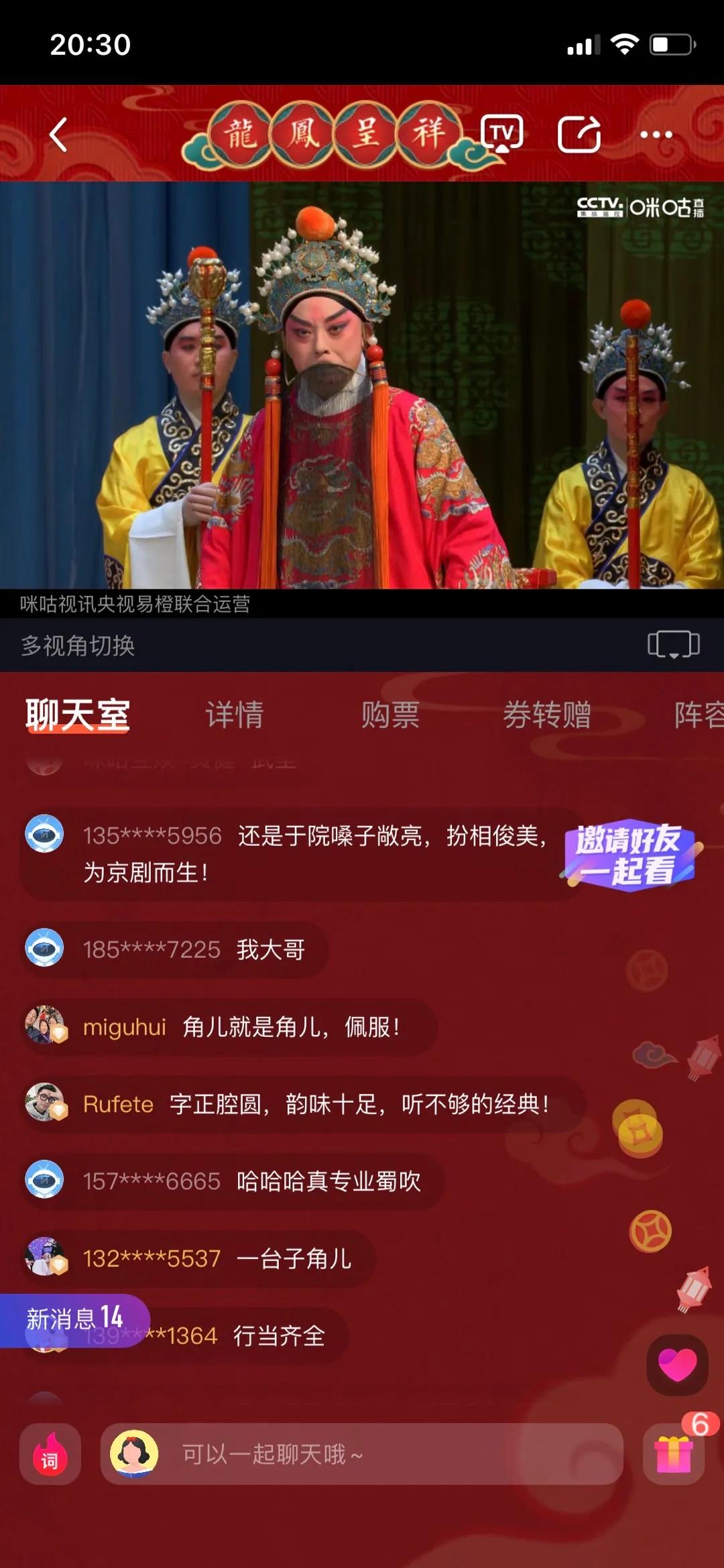 《龙凤呈祥》云演播运用创新的技术手段,尽最大可能的在线上空间实现了对剧场环境的“复刻”与升级,为观众提供了叫好、鼓掌、打赏等情绪的“表达手段”。首先,上线多种京剧专场“云打赏”表情包、弹幕、互动道具,让用户“玩起来”,不在剧院胜在现场。其次,以当下备受国民喜爱的国风、国潮元素,设计了系列龙凤呈祥专属表情包、封面红包,为观众、戏迷的春节期间的社交提供欢乐佐料。此外,《龙凤呈祥》播出期间上线的“云包厢”功能,更打造了家庭合家欢或票友齐聚一堂的线上社交场景,让名家名曲陪伴亲朋好友庆团圆、享美好。