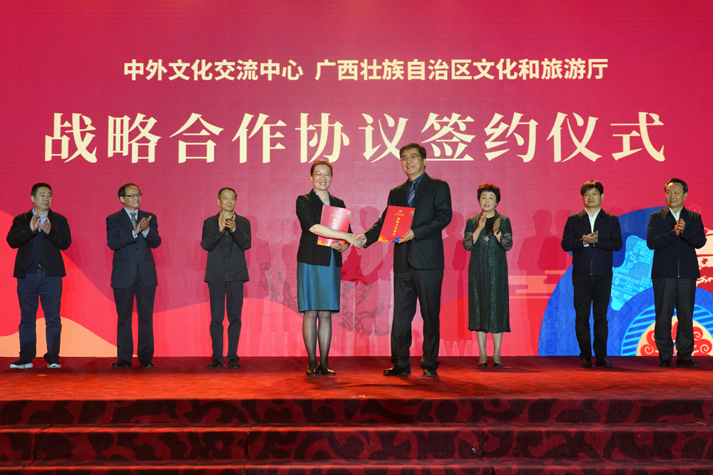 2021年4月7日,中外文化交流中心(以下简称“中心”)与广西壮族自治区文化和旅游厅在北京签署了战略合作协议,中心副主任宋伟与广西壮族自治区文化和旅游厅副厅长严霜现场交换了战略合作协议文本。