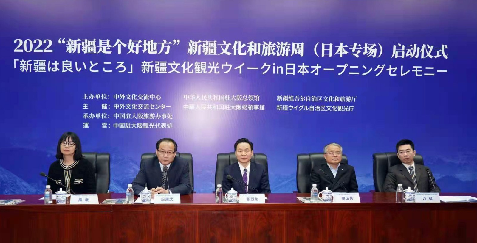 3月25日,2022“新疆是个好地方”新疆文化和旅游周(日本专场)启动仪式以线上线下相结合的形式成功举办。文化和旅游部国际交流与合作局副局长张西龙、中外文化交流中心主任段周武、新疆文化和旅游厅党组书记侯汉敏、中国驻大阪总领事薛剑、日本佛教大学尼雅遗址学术研究机构代表小岛康誉等出席并致辞,中外文化交流中心副主任万铤主持,200余名日本民众在线参加了启动仪式。