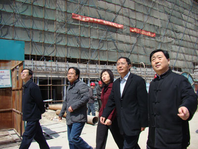 | 文化部党组副书记、副部长欧阳坚在国家博物馆馆长吕章申等的陪同下视察工地建设情况 |