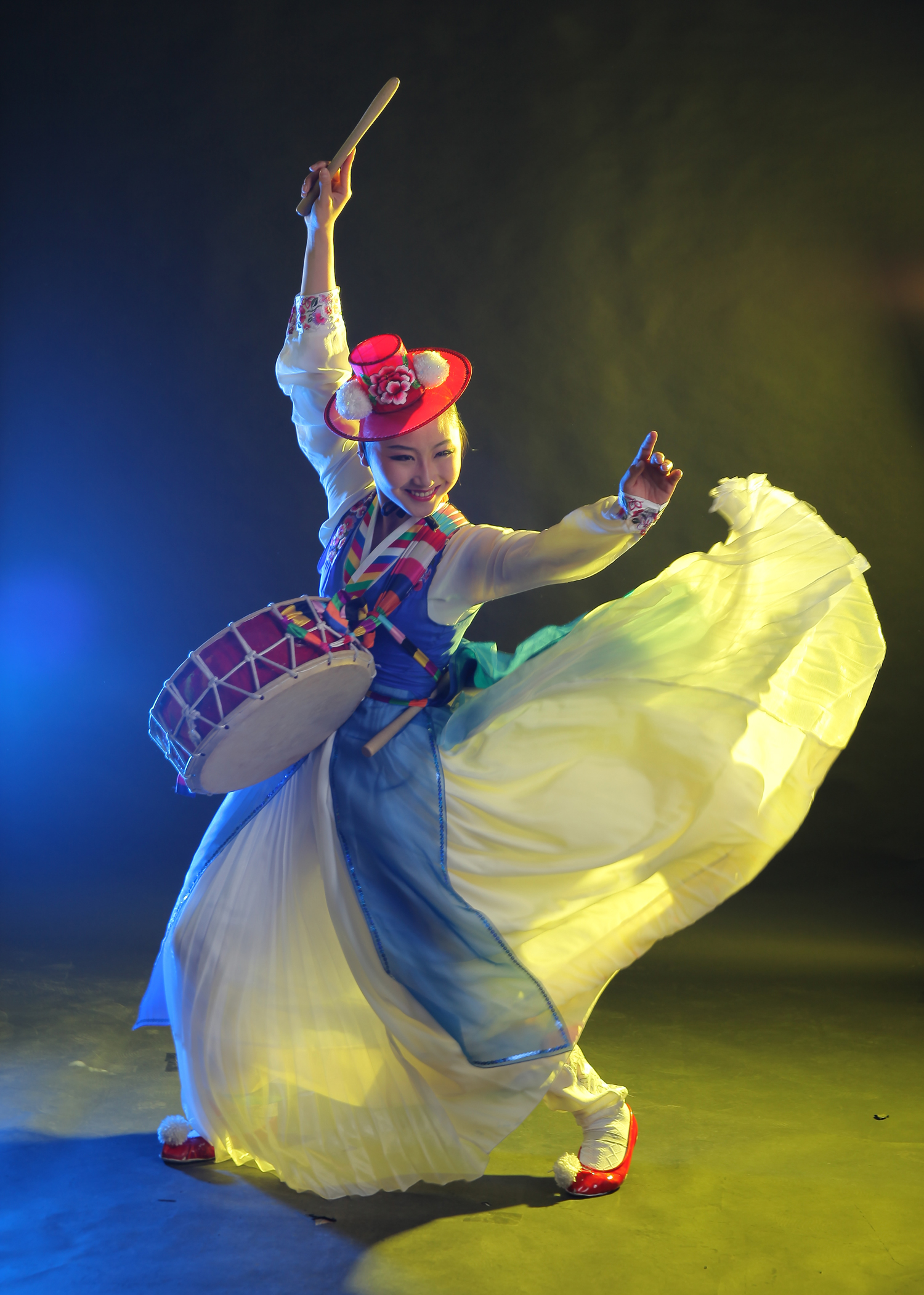 独舞《舞童》展现了舞童潇洒的舞姿和熟练且具有独具个性的鼓段以及鼓技,表现出朝鲜族少女舞童天真而真实又生动的人物形象。