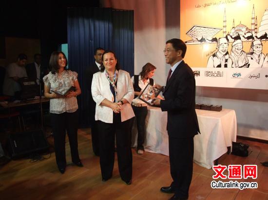 中国驻约旦使馆与安曼TAG孔子学院联合开办中国文化、艺术展台,展示中国工艺品,传统服装、介绍中国文化的书籍、小册子、光碟等。萨娜公主和各国嘉宾参观了中国展台,并与演员合影。