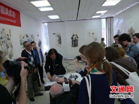 此次画展共展出50余幅画作,包括写意山水、花鸟、人物以及部分油画作品。据悉,展览结束后,代表团将启程赴圣彼得堡举办画展。