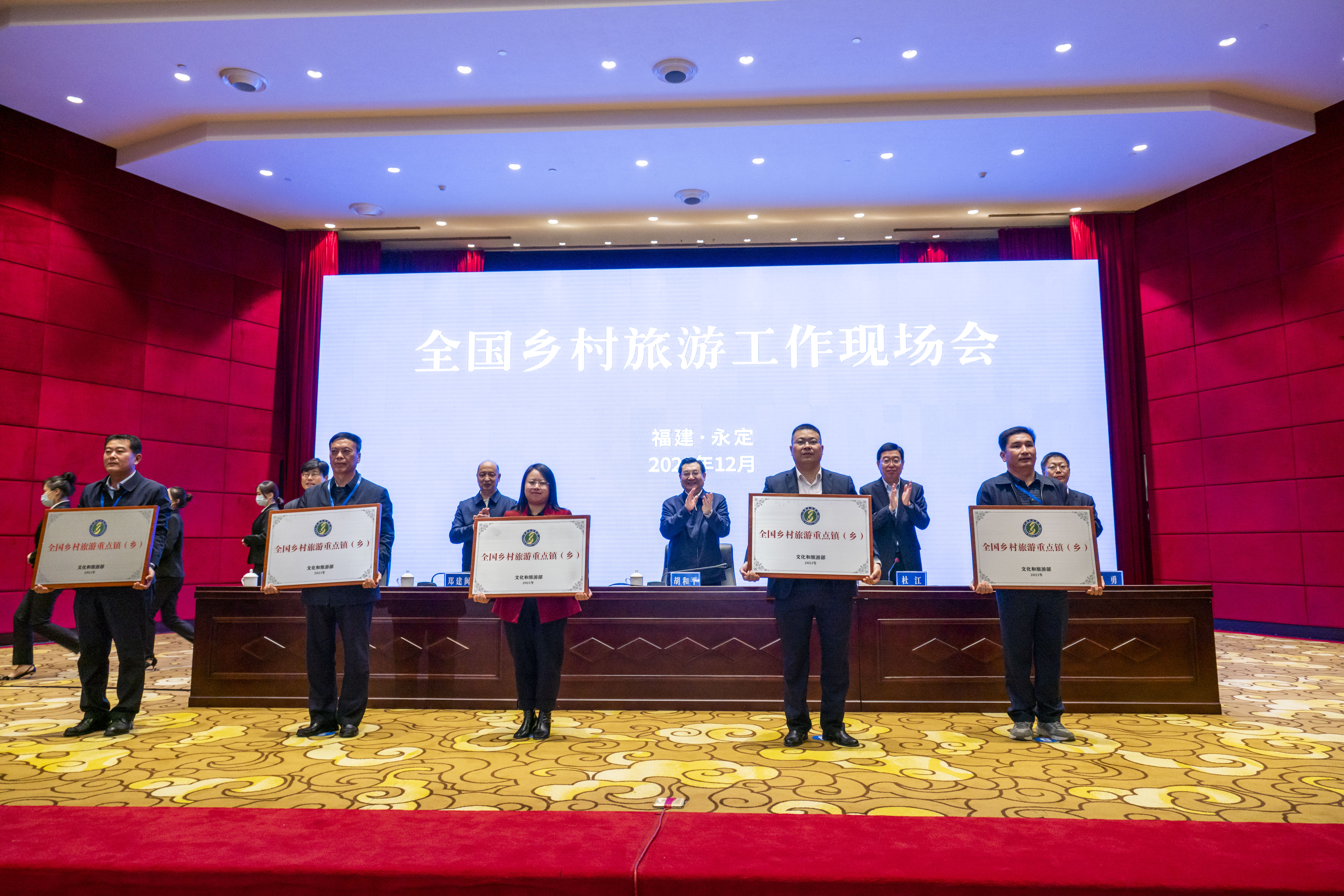 12月17日,全国乡村旅游工作现场会在福建省龙岩市永定区召开。会议强调,要深入学习贯彻党的十九届六中全会精神、中央经济工作会议精神,学习贯彻习近平总书记关于乡村振兴、乡村旅游工作重要论述精神,推动新时代乡村旅游发展实现新突破,以优异成绩迎接党的二十大胜利召开。文化和旅游部党组书记、部长胡和平出席会议并讲话,福建省副省长郑建闽出席会议并致辞,文化和旅游部党组成员、副部长杜江主持会议。