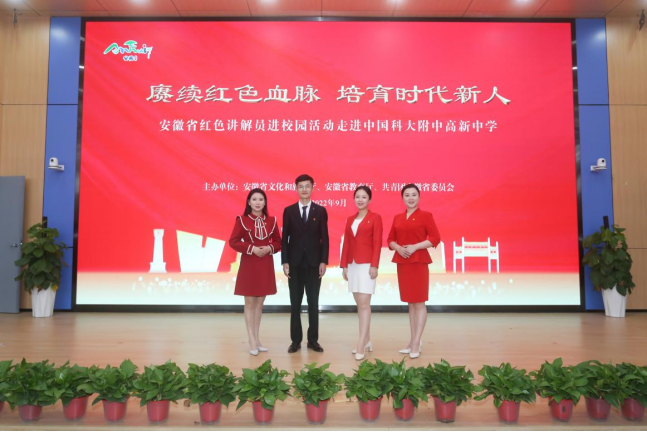 据了解,今年5月,安徽省文化和旅游厅、省教育厅、共青团安徽省委员会联合印发通知,在全省开展“赓续红色血脉 培育时代新人”红色讲解员进校园活动,聚焦党在安徽省各个历史时期淬炼锻造的“大别山精神”“新四军精神”“渡江精神”“小岗精神”“抗洪精神”等伟大精神,深入挖掘讲述革命先烈、英雄模范、时代楷模的感人故事,教育引导青少年学生厚植爱党爱国爱社会主义情感,自觉践行社会主义核心价值观,不断增强永远跟党走的信仰信念信心。全省各地积极响应,在做好疫情防控的前提下,有序开展红色讲解员进校园活动,充分发挥红色讲解员、先进典型代表的示范引领作用。