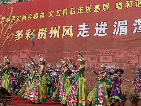 入选国家舞台艺术精品工程的《多彩贵州风》聚贵州多民族歌舞风情于一炉。6年间,一直保持两个版本同时演出,一个版本作为对外宣传推广,另一个版本则立足本土文化市场。尤其是2011年3月推出的旅游版《多彩贵州风》在贵阳大剧院天天上演,场场爆棚。如今,《多彩贵州风》演出团小分队又整装前进,以“公益性、基本性、均等性、便民性”的文化惠民要求,深入农村基层、城市社区、工厂企业等进行演出,把欢乐送到群众家门口,让普通老百姓尤其是农民、留守儿童等也能及时欣赏到已经走出国门、富于本土特色和时尚风味的民族歌舞精品,充分体现了共享文化精品、彰显文化民生的发展理念。