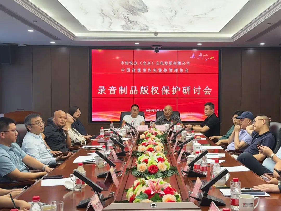 7月23日,由中国文化传媒集团所属中传悦众(北京)文化发展有限公司和中国音像著作权集体管理协会共同发起的录音制品版权保护研讨会在北京举行,来自福建、湖北、江苏等10个省市文化市场综合执法有关部门的代表参加。会议围绕完善录音制品版权相关法律法规、解决录音制品传播市场上存在的某些拒不付酬及收费难现象,以及录音制品传播市场侵犯获酬权行为的鉴定措施和处罚标准、代表性案例等进行了分享、交流和探讨。